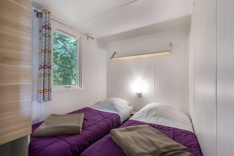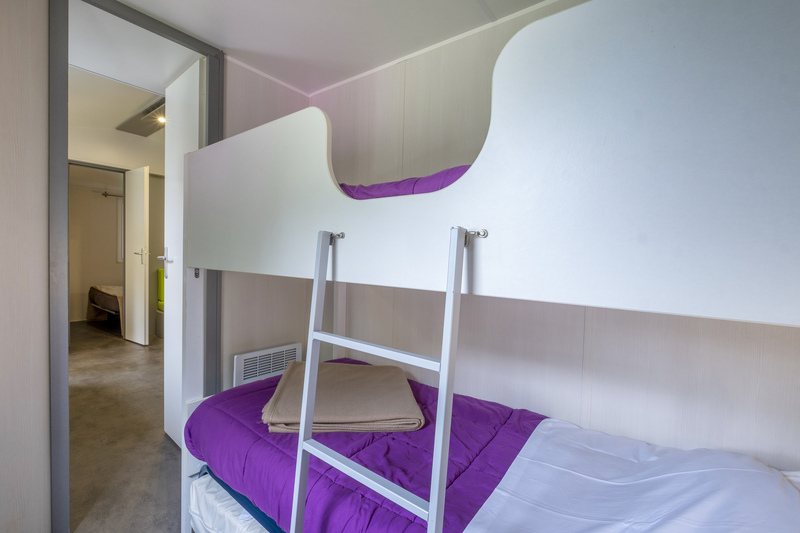 Coin nuit : une chambre avec 1 lit double (140×190), deux chambres avec 2 lits simples (80×190) côte à côte et/ou superposé, oreillers et couvertures fournis.