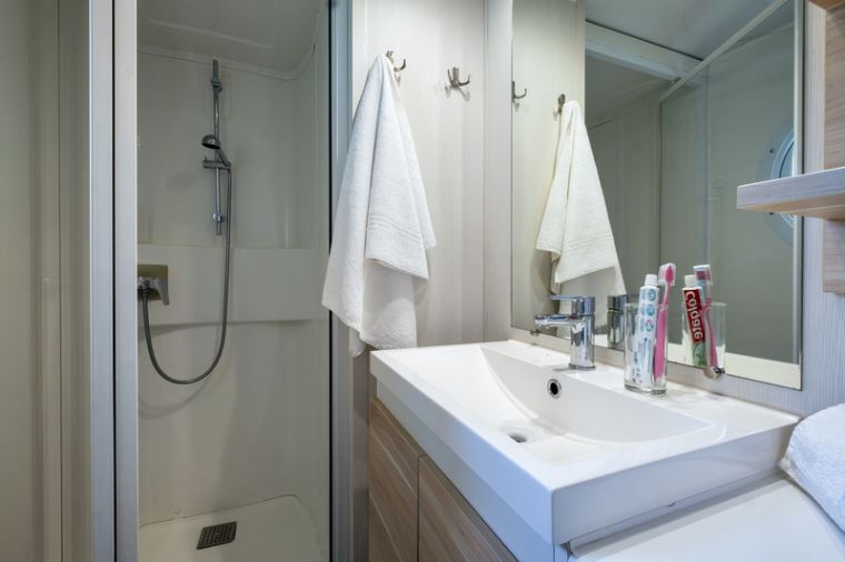 Sanitaire : salle d’eau avec douche, lavabo et WC.